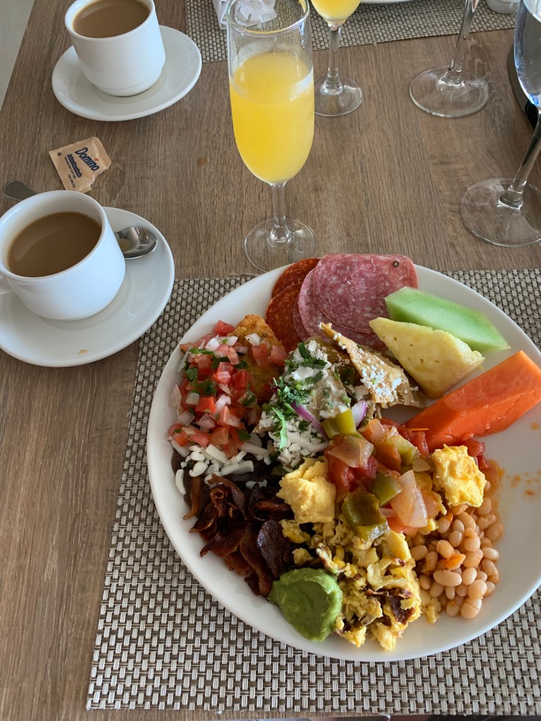 By the time we got settled in, it was kind of late and I was getting hangry so we headed to the buffet to grab a bite. There was a large selection and everything we tried was good. Here’s a picture of my buffet breakfast the next morning. Breakfast in Mexico is one of my most favorite things. I just love the fresh ingredients in the salsa/pico de gallo. Soooo goood!