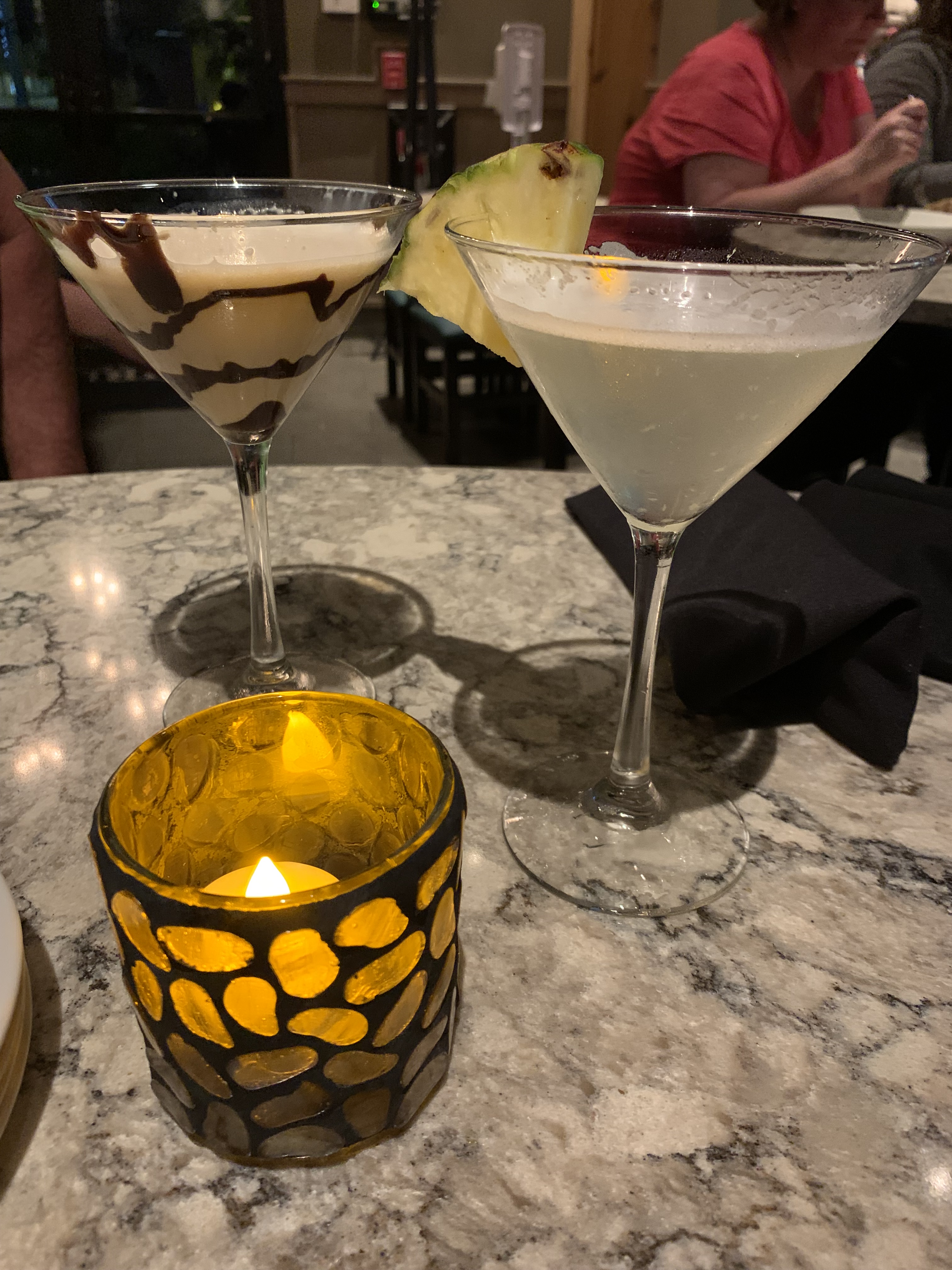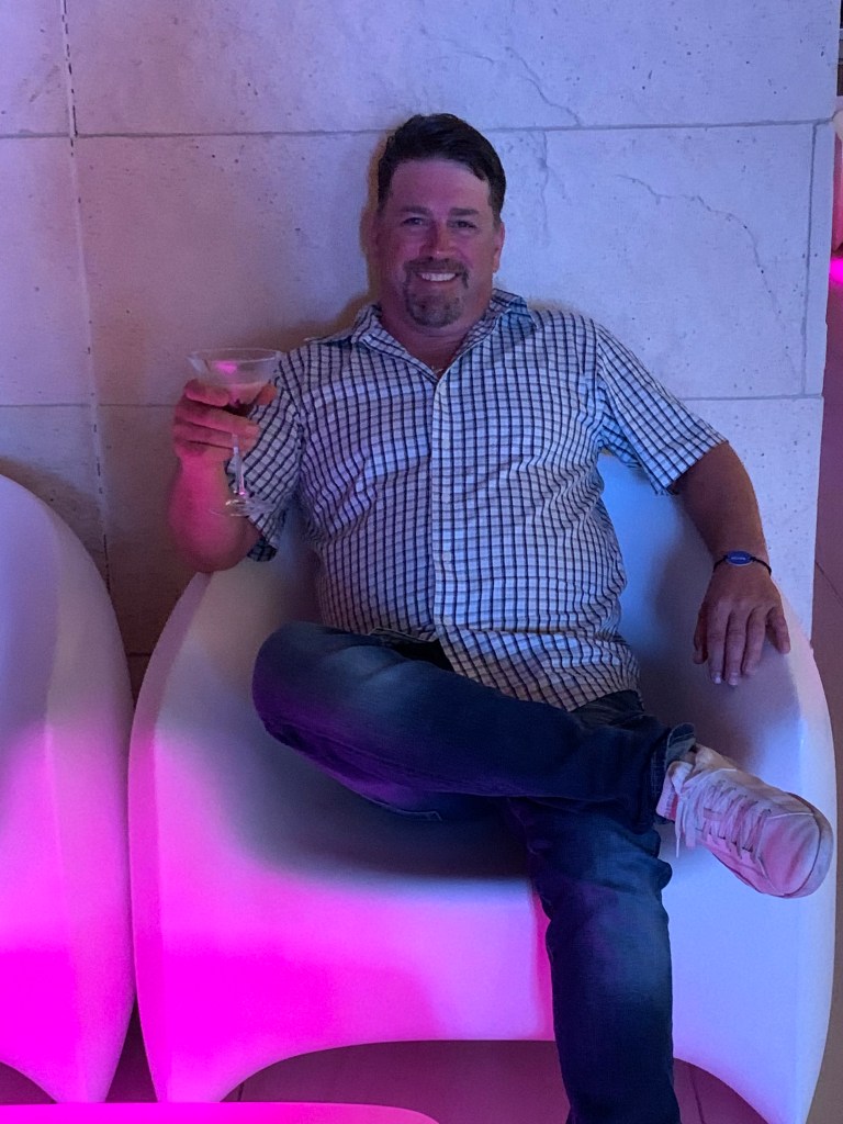 Every evening the resort had a different style of live music on a stage outside of the lobby. They had these cool chairs that lit up and changed color. We sat there almost every night and enjoyed the entertainment and the drinks. Jerry especially loved his chocolate martinis, while I usually stuck with gin & tonic or dark rum & diet pepsi. 🙂