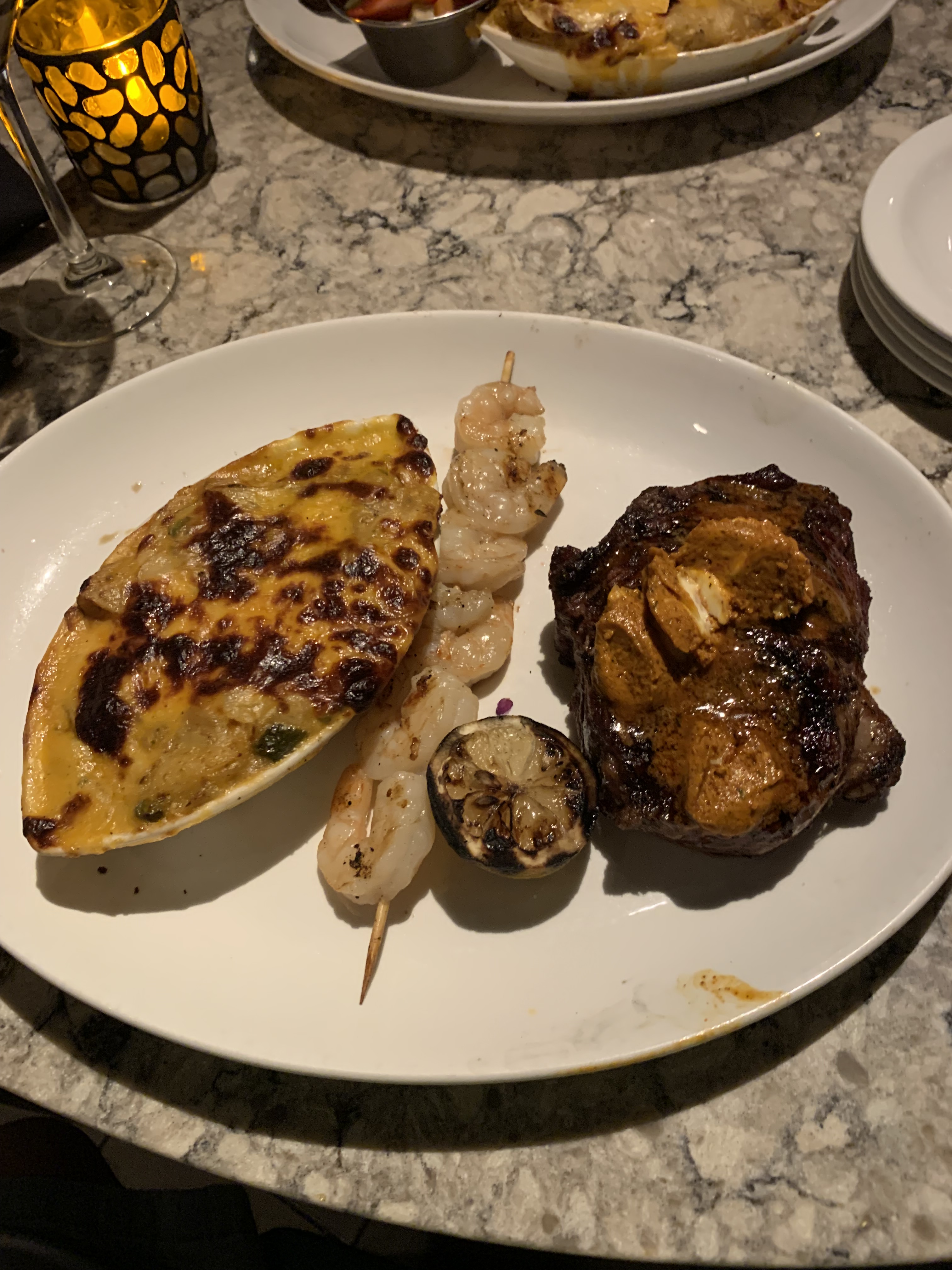 After another uneventful and quick flight back to Fort Lauderdale, and we took the free hotel shuttle from the airport to our home for the night, SpringHill Suites Fort Lauderdale Airport & Cruise Port. Since it was New Year’s Eve, we walked to a restaurant near the hotel – Firebirds Wood Fired Grill – and crossed our fingers that they would be able to squeeze us in. They did, and we had a delicious meal and drinks to ring in the new year! Back at our room we could see tons of fireworks shows from our window at midnight. We were thankful we didn’t have to go anywhere to see them as we were pretty much exhausted from our two weeks away by this point.